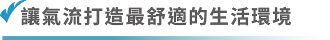 康達面板形狀使氣流彎曲到天花板,將空氣傳播達10公尺遠,讓整個房間舒適通風。